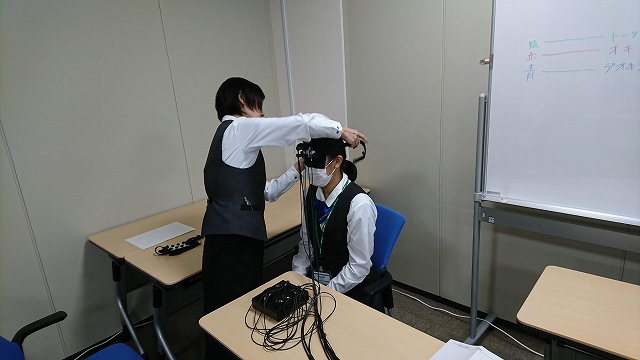 生徒は実際に被験者となって計算や音読などの課題をこなし、脳に流れる血流のリアルタイムでの変化を興味深く交互に観察しました。