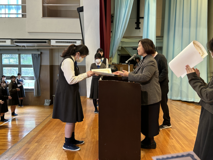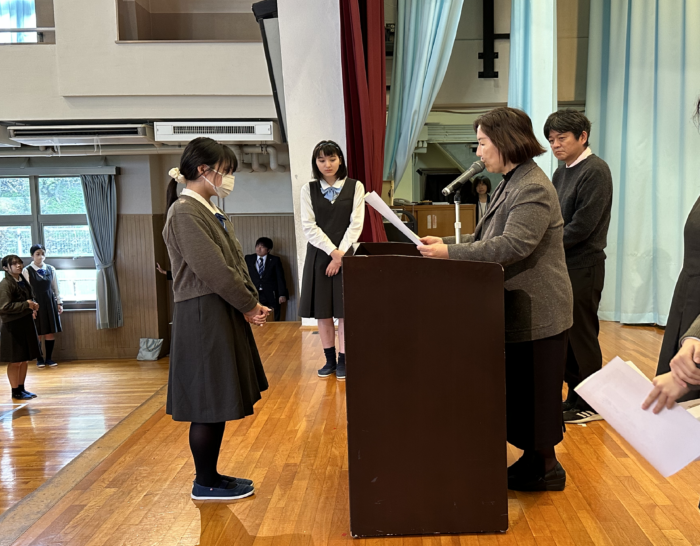 全校朝礼では、様々な方面で活躍する生徒の表彰が行われます。表彰を通じて、本校生徒の活躍をご紹介いたします。