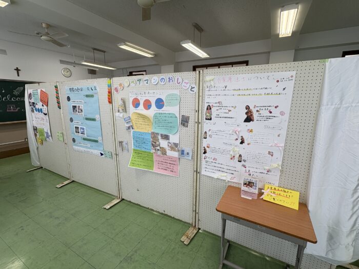 高校3年生のプレップ総合コースの生徒が、これまでの学びの集大成として、京都市聴覚言語障害センター様、音楽療法士の方々、セカンドハーベスト様など様々な活動をされている方の取材・インタビューを行い、動画作成と教室での展示を行いました。取材を通して知った方々と活動内容など、テーマに選んだ社会課題を生徒たちが自分ごととして捉えている作品になっていました。