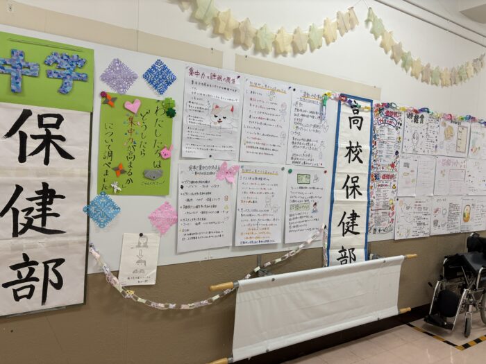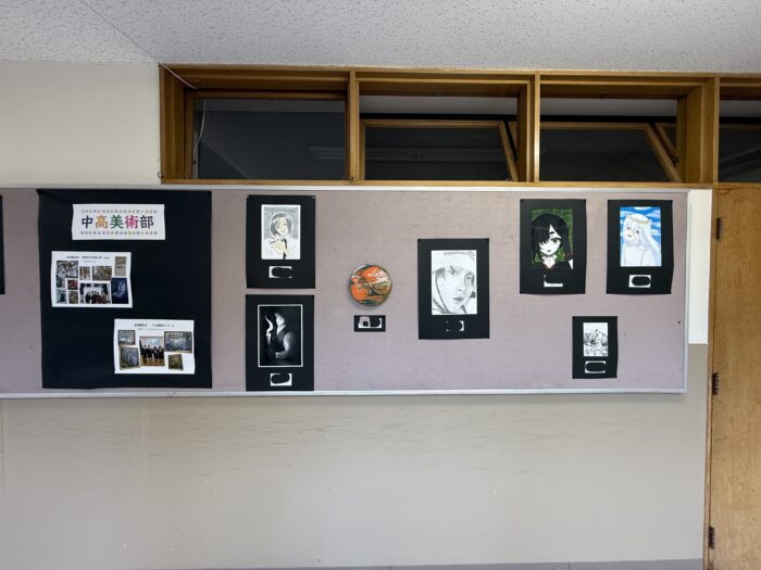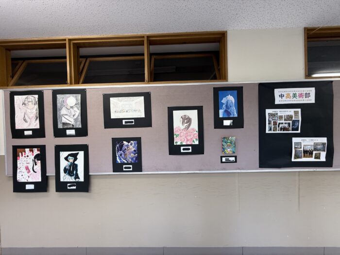 廊下には、美術部の作品と高校保健部の作品が展示されていました。