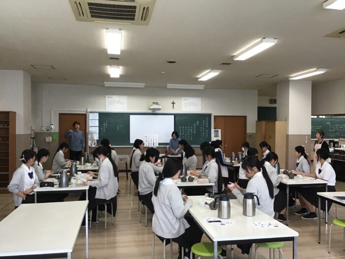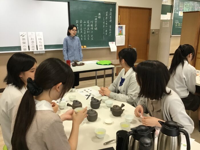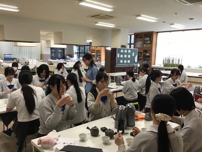 9月30日(火)と10月1日(水)の両日、高校2年生の家庭基礎と高校3年生の家庭総合の授業で、一保堂茶舗より講師先生方をお招きし、「日本茶の味わい〜煎茶コース〜」と題した特別な時間をもちました。