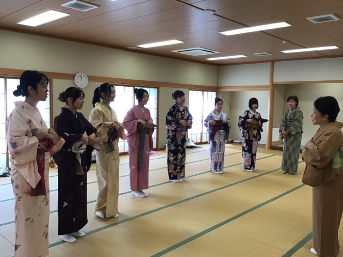 生徒からは、「着物を着ると、自分も友達もすごく印象が変わり、綺麗に整って見えて新鮮でした。たたむときもきれいにたためて、着物の丁寧な作りや日本の文化のすばらしさを感じました。」「一番楽しかったのは、最後の帯をリボンのように形作ることでした。一人ひとり形が少しずつ違って個性が見えるのが面白かったです。帯の裏地の柄を見せるアレンジも初めて知り、面白かったです。」といった感想を寄せてくれました。
