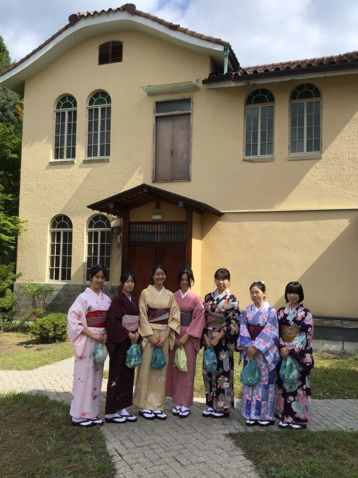 高校3年生の選択授業「家庭演習」で、10月7日(火)に7名の生徒が着物の着付け実習を体験しました。
