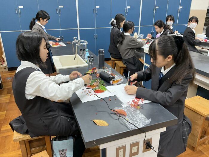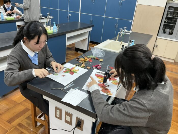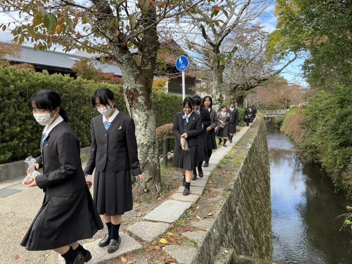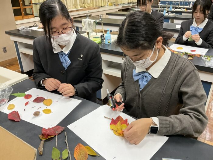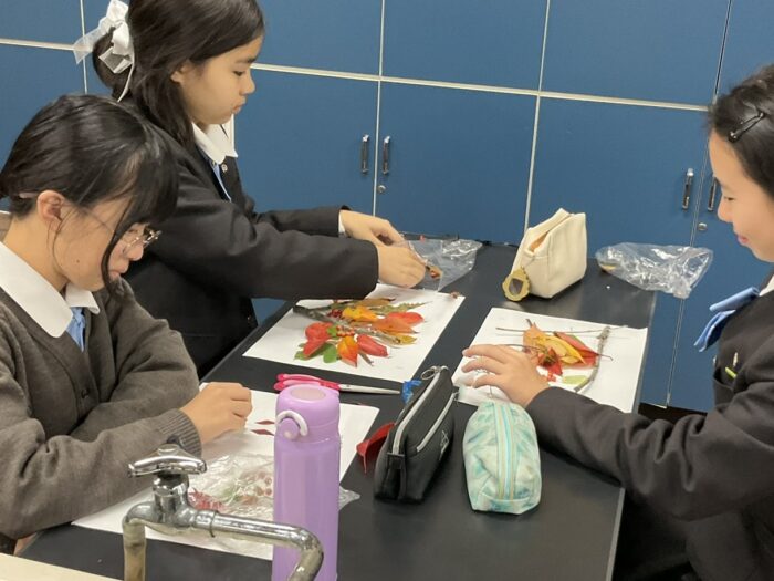 11月6日(木)、中学のGWJ(中1、2年)とブリッジプログラム(中3)の時間を利用して、秋の深まりつつある「哲学の道」を散策しました。急に色づき紅葉が進んだ疎水沿いをゆっくりと散策し、途中様々な彩りの落ち葉や木の実を集めました。その後学校で思い思いの「秋」を具体的な形(アート)に仕上げました。立体的な作品も含め、一人一人が感じた秋を表現できています。