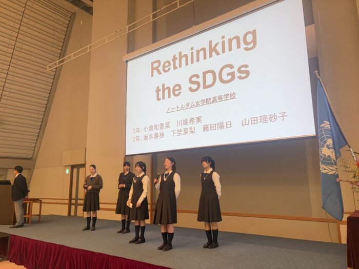 We were invited by the UN Kyoto support organization to participate in this prestigious event on November 8th. The keynote speaker was retired Ambassador Fujisaki. He is an amazing person who has personally met every U.S. president since Jimmy Carter. He talked about the future of international relations and Japan’s role in the changing world. Other participating high schools and universities all presented on various international or developmental topics. All the presentations were at a very high level; the students were asked probing questions by the event coordinator, Professor Nakanishi of Kyodai University. After the main event, there was a reception which the students greatly enjoyed, as they were able to socialize and network with the adult speakers as well as their peers. All in all the event was a tremendous success, and the Notre Dame Global students found it a very motivating and educational experience.