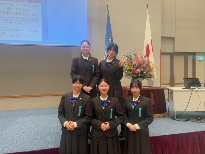 日本国際連合協会京都本部より、11月8日(木)に開催された国連創設80周年記念・ICC Kyoto開館60周年プレイベントへの参加をご招待いただき、高校2年生、3年生のグローバル英語コースの生徒がプレゼンテーションを行いました。