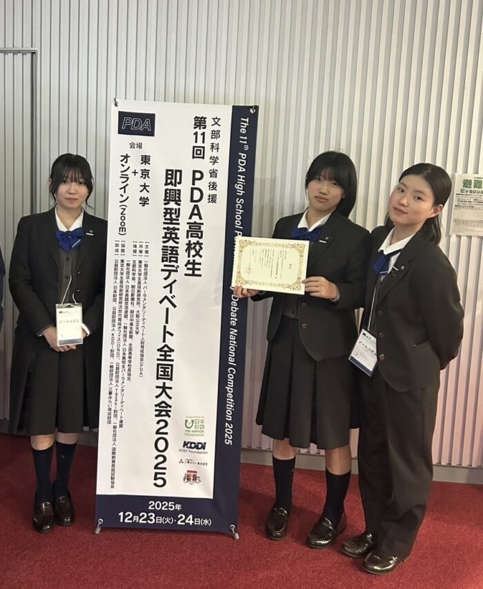 12月23日(火)~24(水)、東京大学とオンラインのハイブリッドで行われた「第11回 PDA高校生即興型英語ディベート全国大会2025」に出場しました。今年度は現地での参加です。