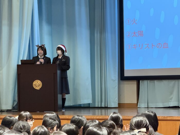12月20日(土)終業式の前に全校生徒が講堂に集まり、キャンドルサービスを行いました。