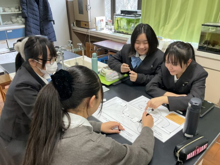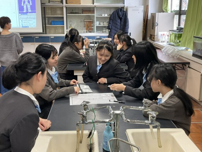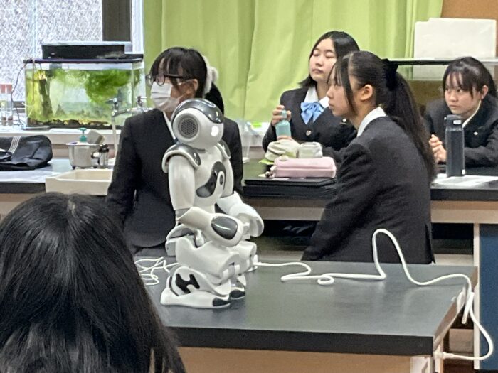 ロボットの「なお君」がプログラムの命令に従って、音声を発生したり、動作をしたり、楽しく学習することができました。実際にワークシートを使って「なお君」が動作をする様子など興味津々で取り組みました。