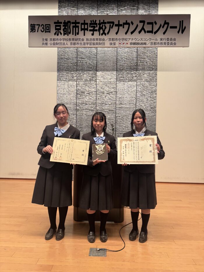 2026年2月1日(日)京都アスキーで行われた「第73回京都市中学校アナウンスコンクール」に放送局の中学1年生が2名、中学2年生が1名出場しました。