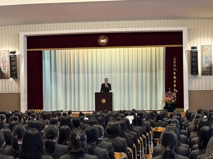 着任式に引き続き始業式では、山口校長より、昨日の入学式で式辞として新入生に伝えた『学校生活で大切にして欲しい3つのことのうち「自分を高めること」「学びとは何か」について改めてお話されました。