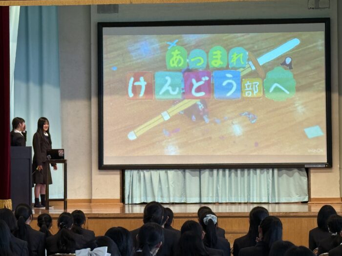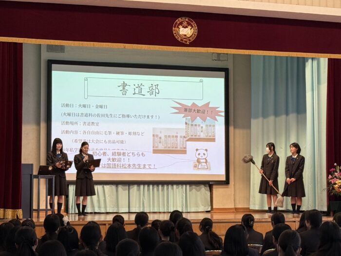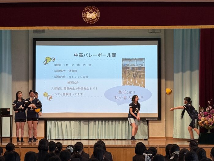 前半は、中学と高校の新入生を対象に、在校生がそれぞれの部活の紹介を個性豊かにしてくれました。
