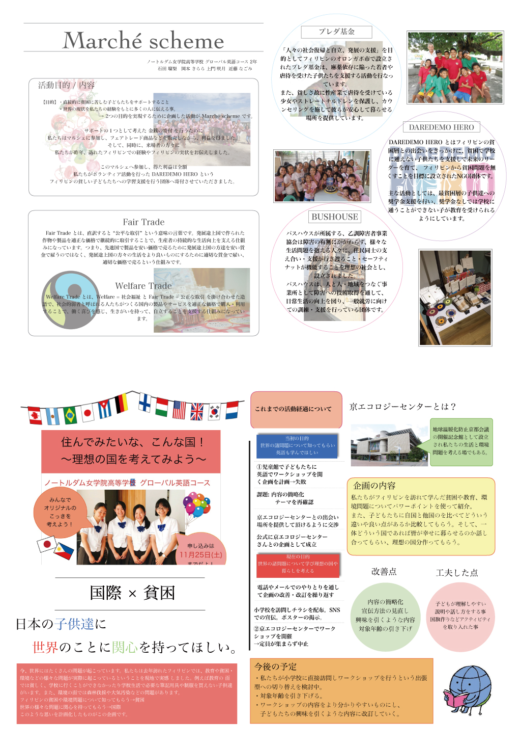 ワン・ワールド・フェスティバル for Youth(於:大阪YMCA)に グローバル英語コース高校2年生がブース・ポスター発表・ コンペ大会に出展しました。