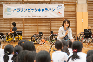 6月11日の中3福祉の話は、NPO法人パラリンピックキャラバンによる車いすバスケットボールの体験学習でした。講師の方々の自己紹介に続いて車いすバスケットボールのルール説明と試合があり、そのあと全員が競技用の車いすを体験しました。車いすラグビーの紹介もありました。最後は講師を囲んで質問、いろいろなお話を聞くことができました。できないからあきらめるのではなく、どうしたらできるかを考え実現していくことが大切だと、強く感じた2時間でした。