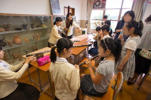 そのあと、授業体験とクラブ体験。授業体験では、今年度からスタートしたスカイプでのオンライン英会話授業もありました。