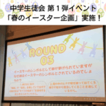4月23日(木)お昼休みに、中学の生徒会が企画した「イースター企画」が行われました。生徒会メンバーが「新入生が学校に早く馴染んで欲しい」「いろんな生徒と話すきっかけを作りたい」と企画しました。春といえば、カトリック校では...