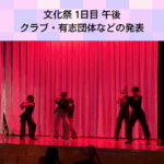文化祭1日目の様子(つづき)です。午前中の演劇発表、高校コース発表が終わり、午後は有志団体やクラブなどの舞台発表です。父母の会様のブースや展示物などもご紹介します。写真で一気に!雰囲気を感じていただけましたら嬉しいです。...
