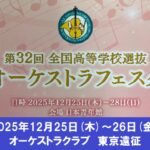 オーケストラクラブでは、2025年12月25日(木)~26日(金)「第32回全国高等学校選抜オーケストラフェスタ」出演のため、東京遠征を行います。 遠征の様子は、現地よりリアルタイムで報告いたしますので、以下の「オーケス...