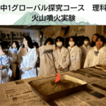 中学1年生の理科では、地震・火山の学習をしています。実際の体験は難しいので、いろいろな映像を見ていますが、少しでも本物に近い物を・・・ということで、化学薬品を使用した火山噴火の小規模実験を行った後、班ごとに砂糖を使った実...