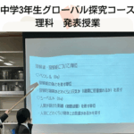 2月13日(金)、14(土)に理科A(物理/化学)のまとめとして、各テーマに分かれてそれぞれが調べた内容を発表し合いました。テーマは、以下の4つです。 〇プラスチックの種類 〇昭和に無くて令和にある物 〇いろいろな 発...