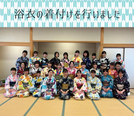 高校2年生プレップ総合コースの生徒59名を対象に、6月10日(月)と13日(木)の2回にわたり、本校キャサリンホール(和室)にて浴衣の着付けを実施しました。 この授業は、公益財団法人京都和装産業振興財団にご支援をいただき...